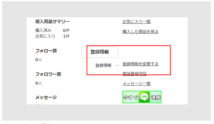 「マイページ」の「登録情報」から会員登録内容を変更します。