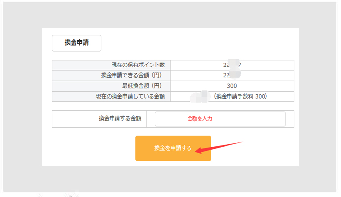 売り上げ金額が「換金申請できる金額」に到達している場合、換金申請が行えます。